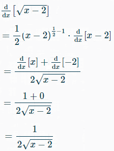 Step 1: Differentiate y = √(x – 2). You can use your graphing calculator, or perform the differentiation by hand (using the power rule and the chain rule). I differentiated the function with this online calculator (which also shows you the steps!):