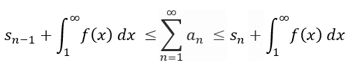 The second inequality group represents the underestimation that comes from sn alone and can be added to the integral of f(x) to obtain the smallest possible converging value for the sequence an.