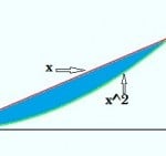 Step 2: Subtract the difference between the areas under the curves. You’ll need to visualize the curves (sketch or graph the curves if you need to); you’ll want to subtract the bottom curve from the top one. The curve on top here is f(x) = x, so: