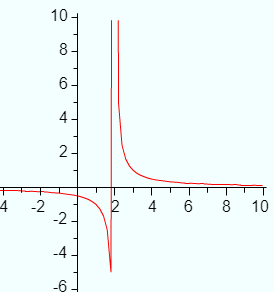 Graph of 1/(x – 2) with a discontinuity at x = 2.