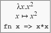 x2 represented in λ (top), math notation (middle) and SML (bottom)