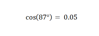 - cos(87°) = 0.05 (to two decimal places).