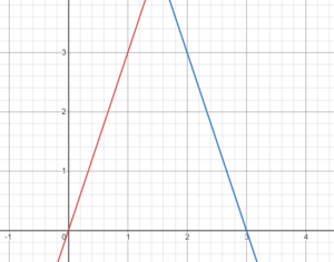 The graph of f(x)=3x (red) is increasing. the graph of f(x) =-3x + 9 (blue) is decreasing.