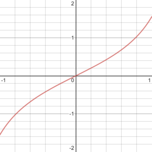 When working with the tangent function in calculus, you’ll usually restrict the domain, which means that you’ll use a boundary for your x-values. The graph below has a domain restricted from -1 to 1.