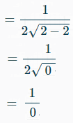Division by zero is undefined. This means that the gradient of the curve is infinite (i.e., vertical) when x = 2.