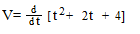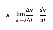 To get the acceleration of an object in calculus, we must take the derivative of its velocity with respect to time:
