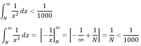 For an approximation of three decimal places, we limit the integral to have a ceiling of 1/1000 in error.