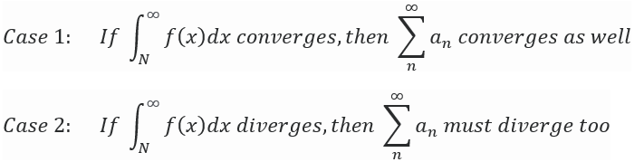 Equating f(n) = an for all n ≥ N, where both n and N are positive integers, forces both the summation of an and the integral of f(x) to either converge or diverge.