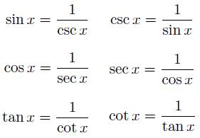 What this is telling you is that the reciprocal functions sec, csc and cot are the reciprocals of the cosine, sine and tangent functions.